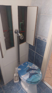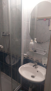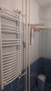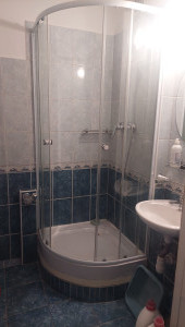 - zuhanyzós fürdőszoba WC-vel, törölközőszárítós radiátorral, járólap, (3 m2)